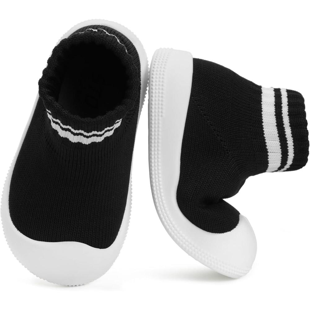 STQ Baby Socks Shoes Toddler Wide Toe Box Non-Slip Slippers Infant Walking Shoe Soft Baby Boys Girls Lightweight Sneakers(Black White)