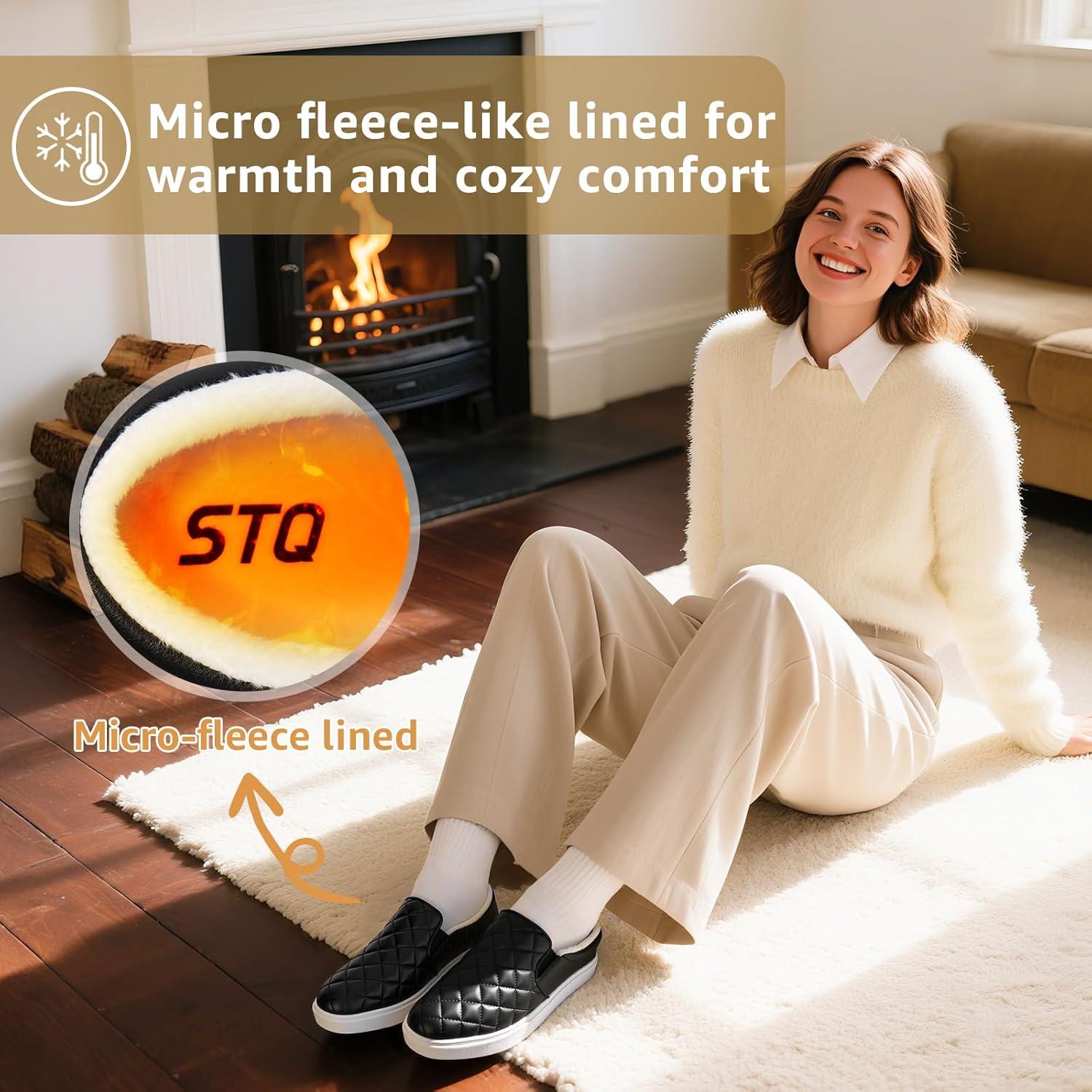 Be the first to review “STQ Loafers for Women Memory Foam Slip On Sneakers EleeS Quilted 1.0 Comfort Fall Shoes(Black Lined)”