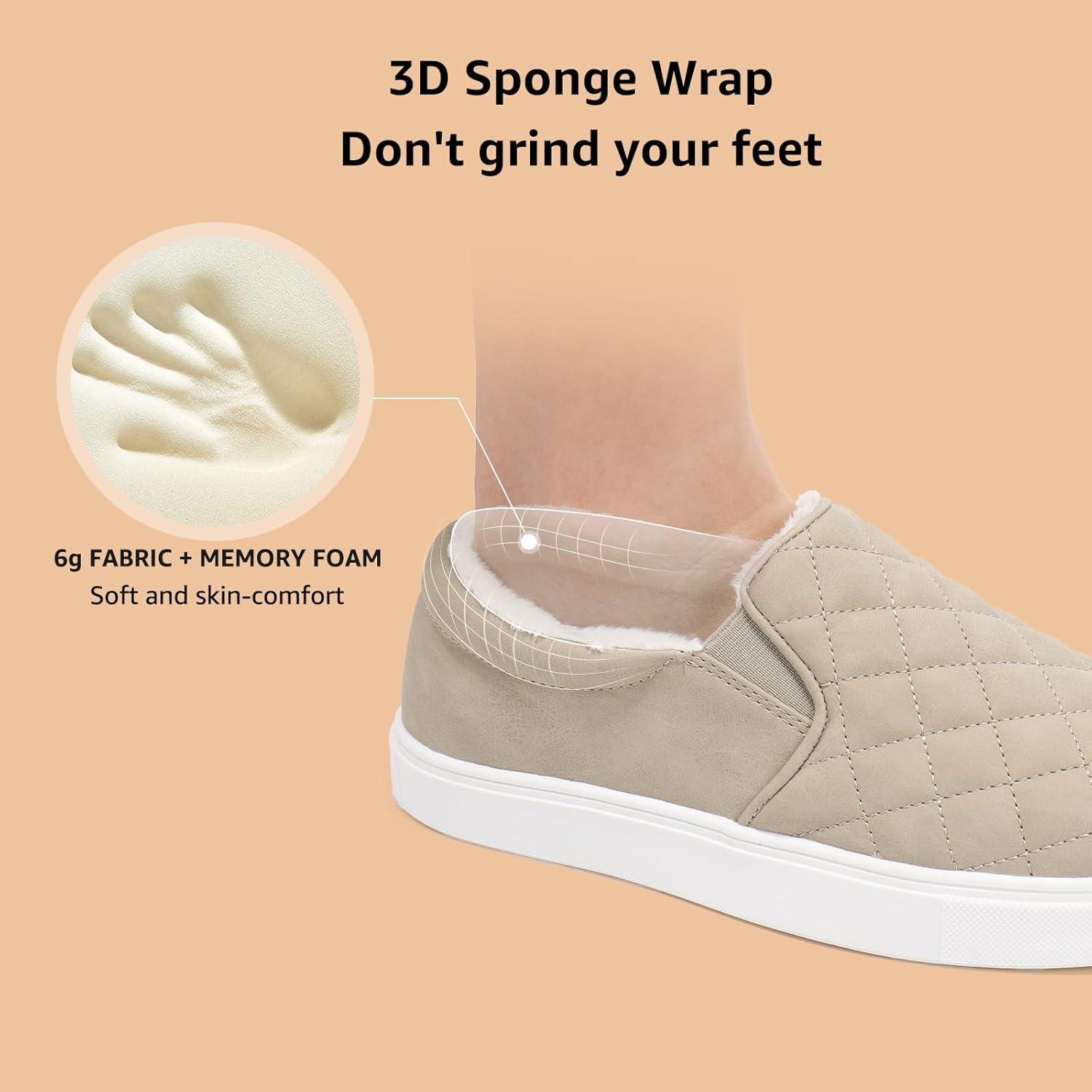 STQ Loafers for Women Memory Foam Slip On Sneakers EleeS Quilted 1.0 Comfort Fall Shoes(Taupe Lined)