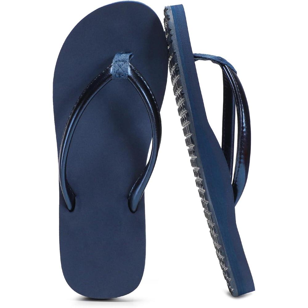 STQ Orthopedic Flip Flops for Women丨Beach Sandals with Arch Support for Plantar Fasciitis Relief(Navy)