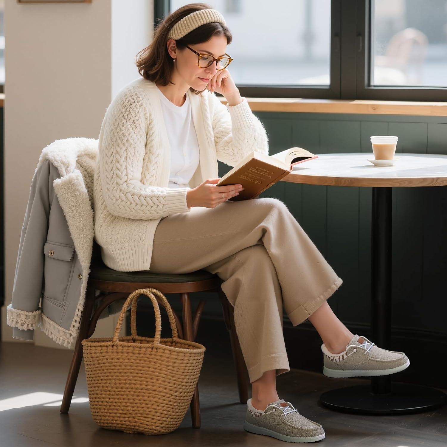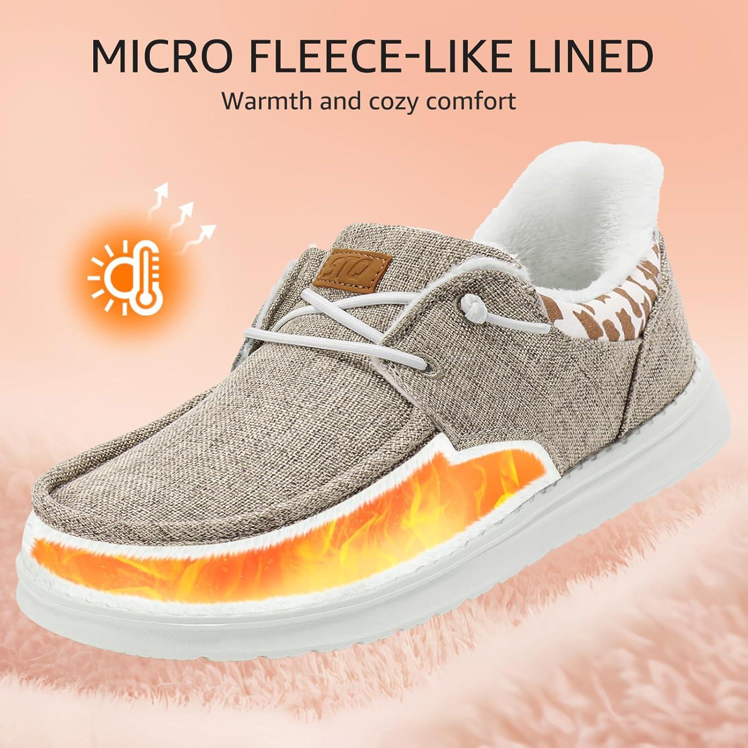 STQ Slip on Women’s Loafers丨Orthopedic Warm Winter Boat Shoes with Plantar Fasciitis Relief(Taupe)