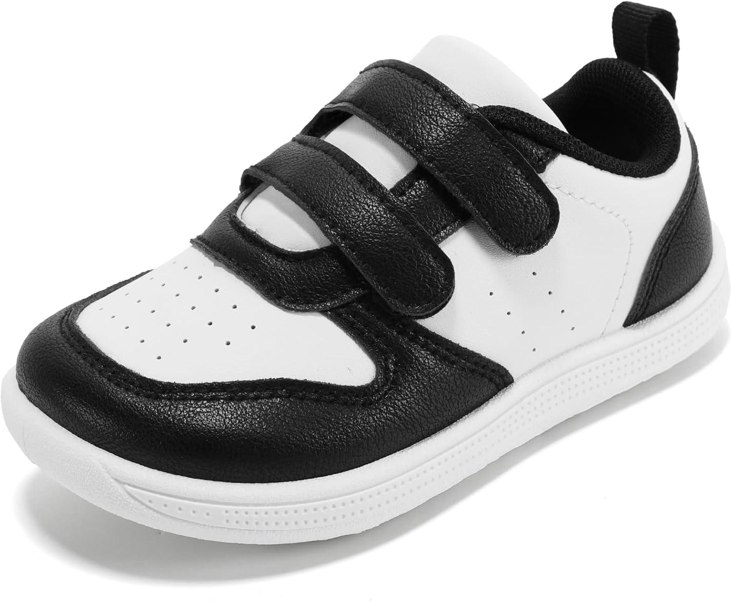 STQ Toddler Wide Toe Box Barefoot Shoes Boys Girls Kids Sneakers Non Slip Lightweight Zero Drop Comfortable Tennis Walking Running School Athletic Casual Indoor Outdoor(Black White)