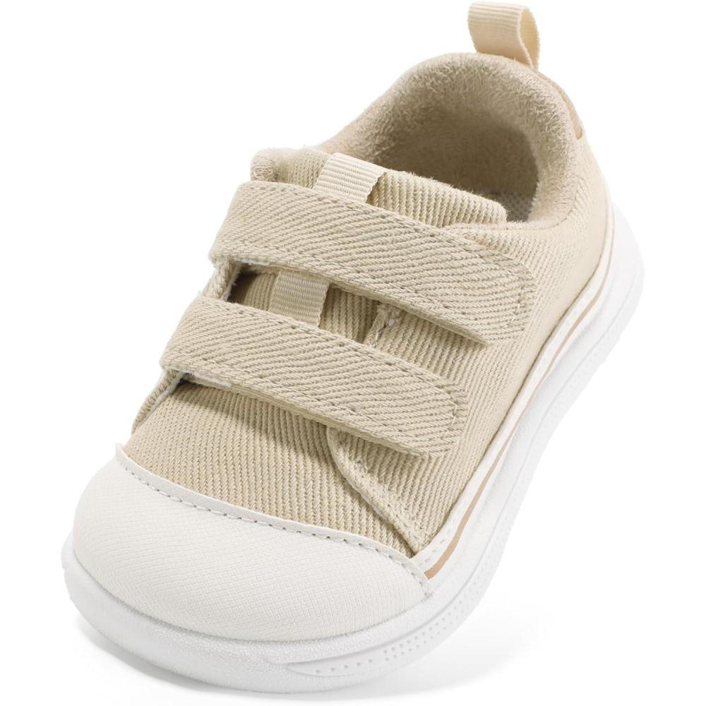 STQ Toddler Wide Toe Box Shoe Girl Boy Barefoot Hook and Loops Non-Slip Walking Baby Sneakers(Beige)