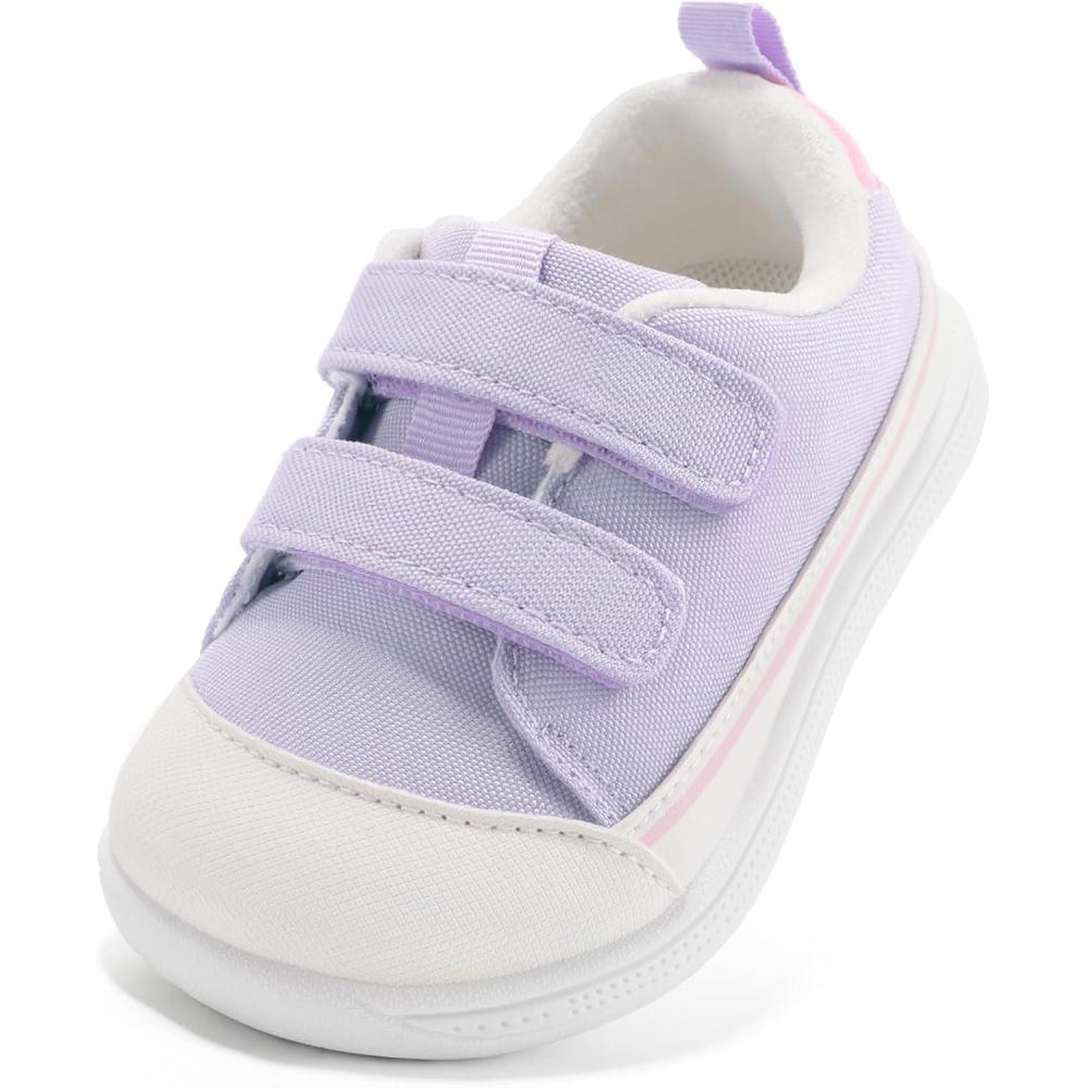 STQ Toddler Wide Toe Box Shoe Girl Boy Barefoot Hook and Loops Non-Slip Walking Baby Sneakers(Mint Purple)