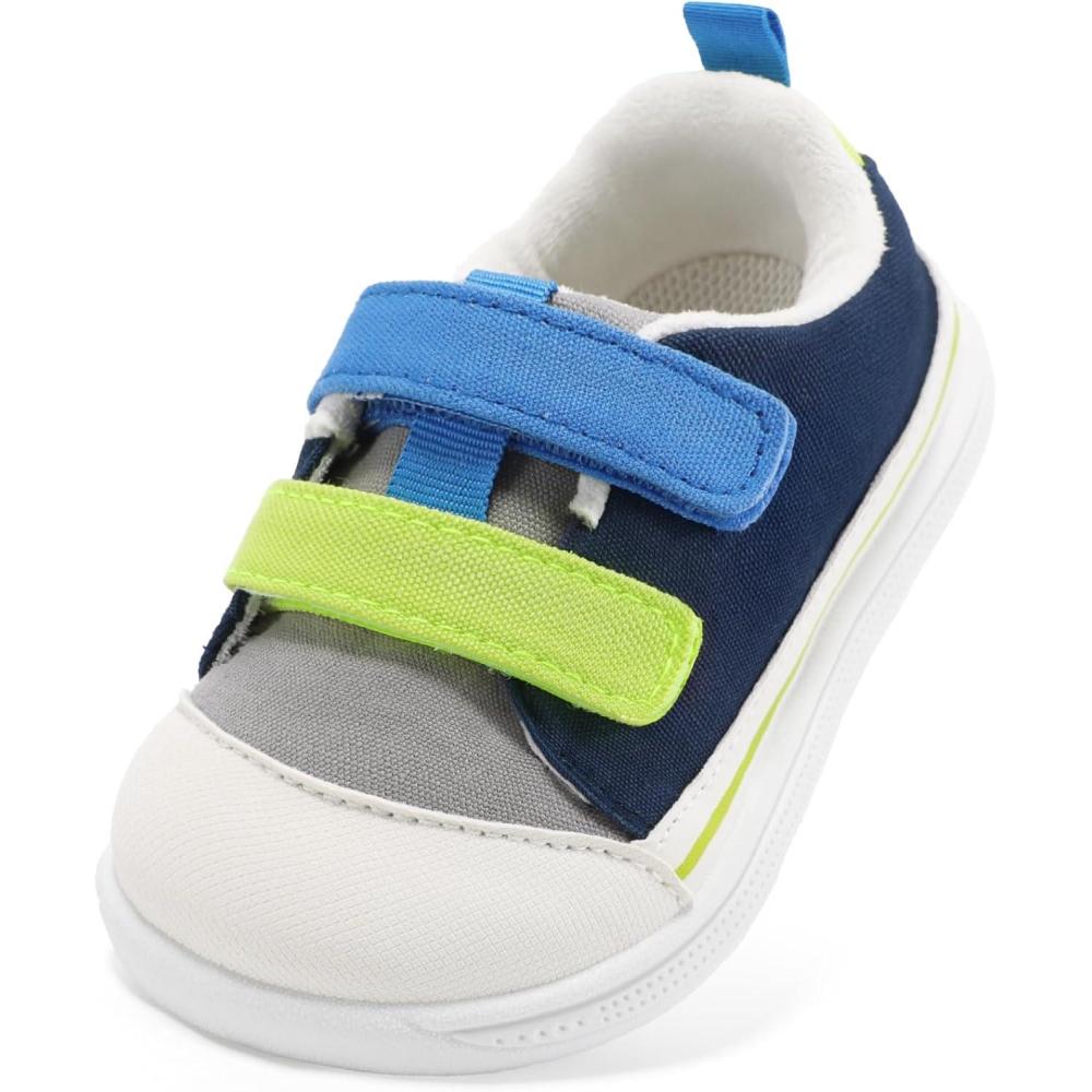 STQ Toddler Wide Toe Box Shoe Girl Boy Barefoot Hook and Loops Non-Slip Walking Baby Sneakers(Navy Blue)