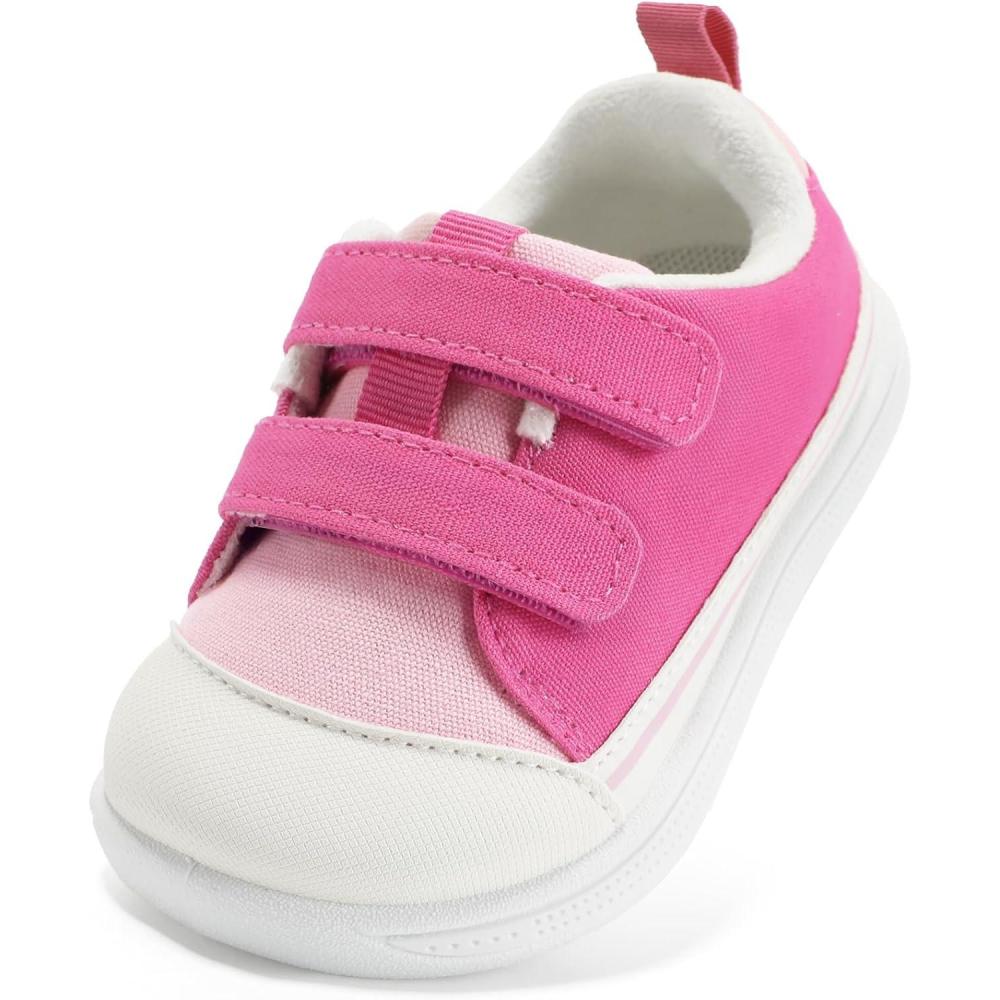 STQ Toddler Wide Toe Box Shoe Girl Boy Barefoot Hook and Loops Non-Slip Walking Baby Sneakers(Rose)