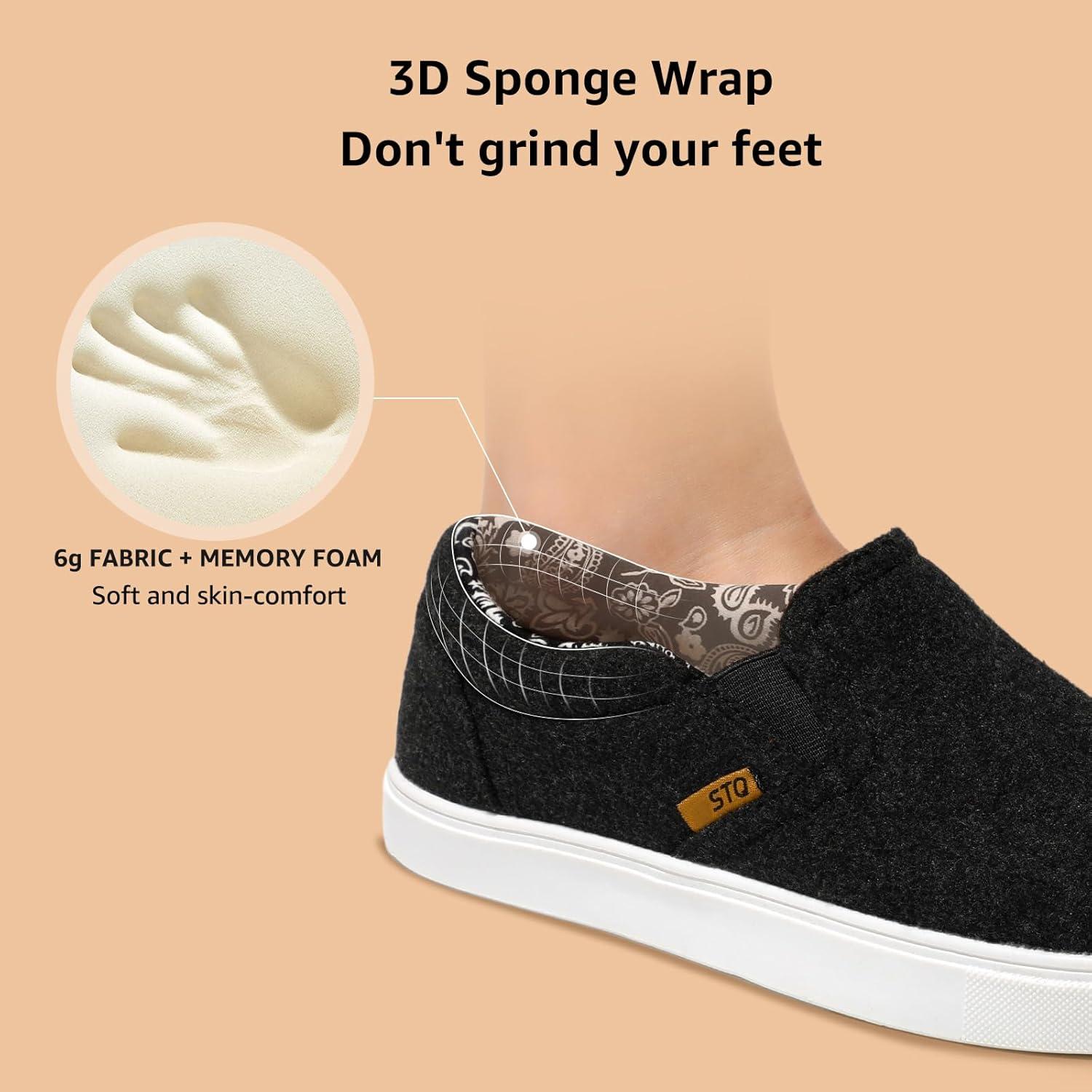 STQ Wide Toe Box Slip On Shoes for Women | Business Casual Shoes for Women Trendy Fashion Sneakers Lightweight Loafers Shoes(Classical Black White)