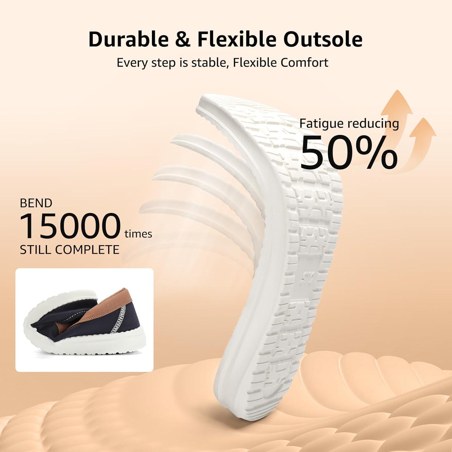 STQ Women Boat Shoes with Orthopedic Insole Slip On Business Casual Shoe for Plantar Fasciitis Lightweight Canvas Loafer(Navy Brown)