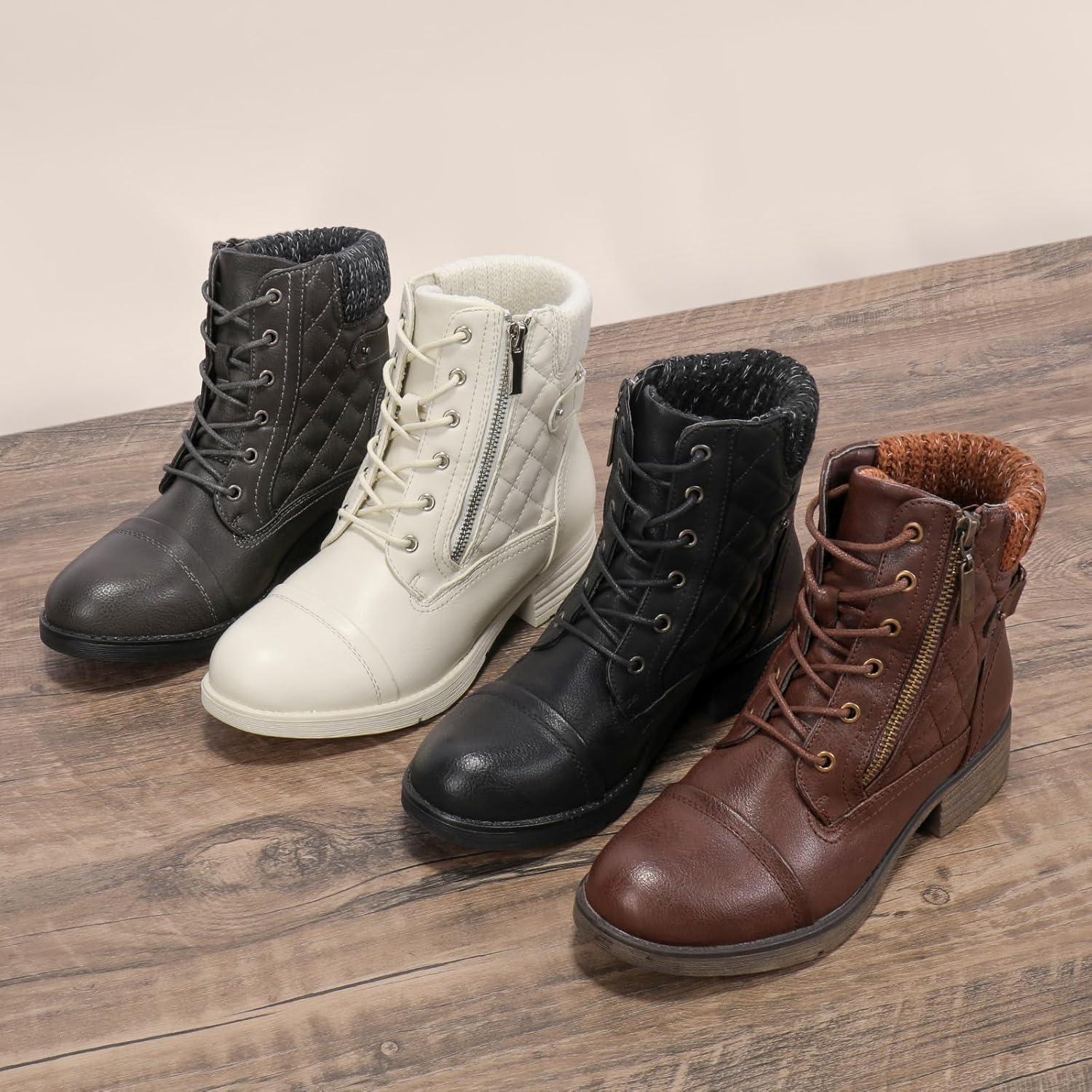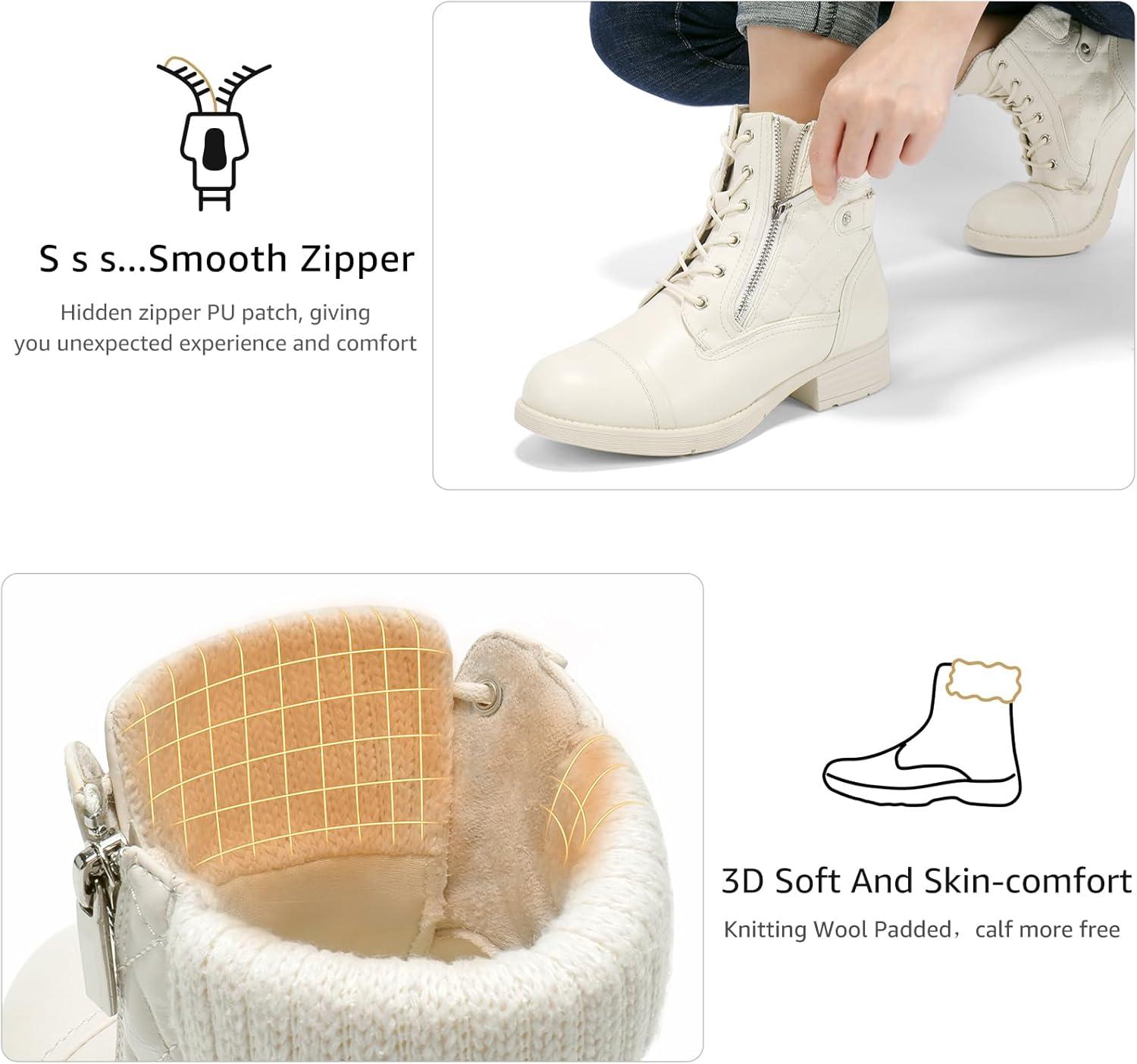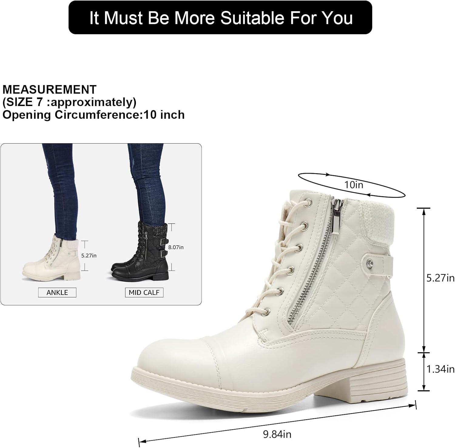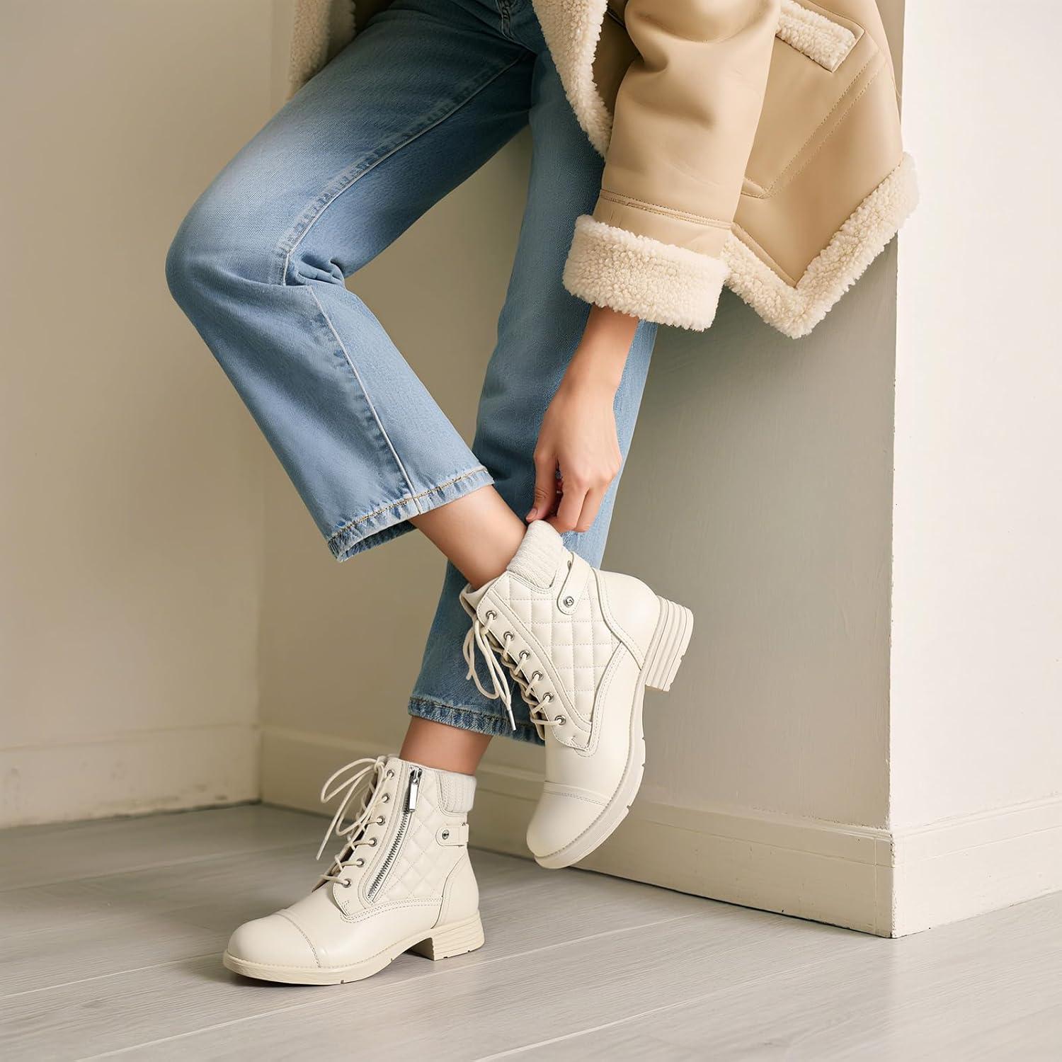 STQ Women’s Combat Boots Lace up Ankle Booties(Creamy Beige White)