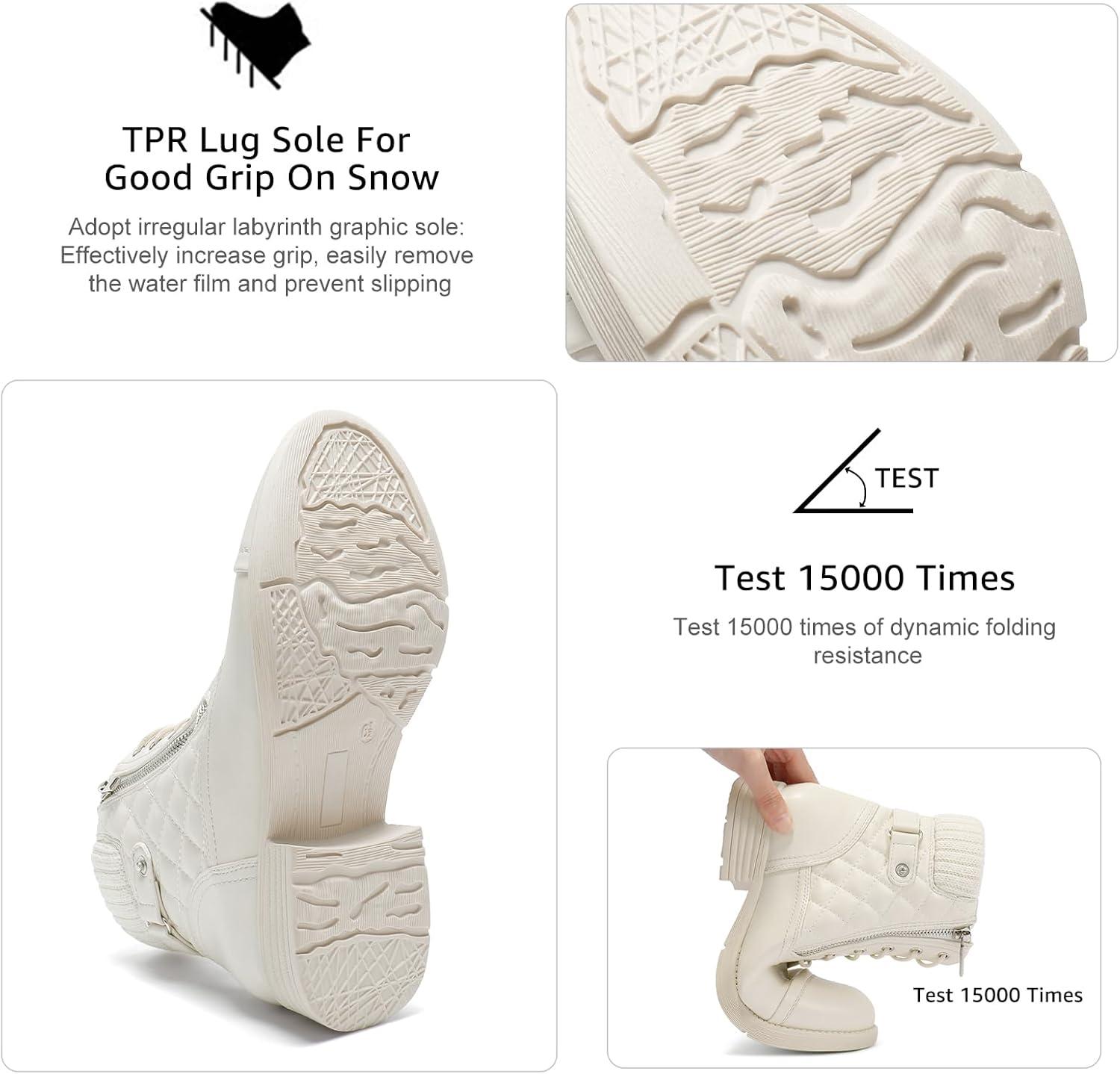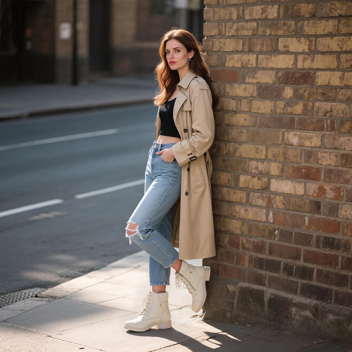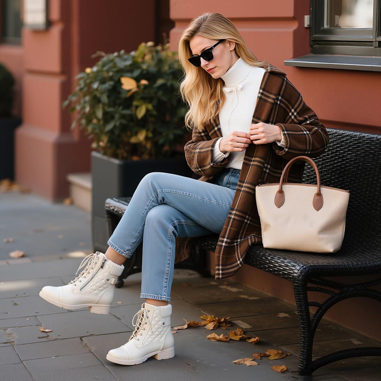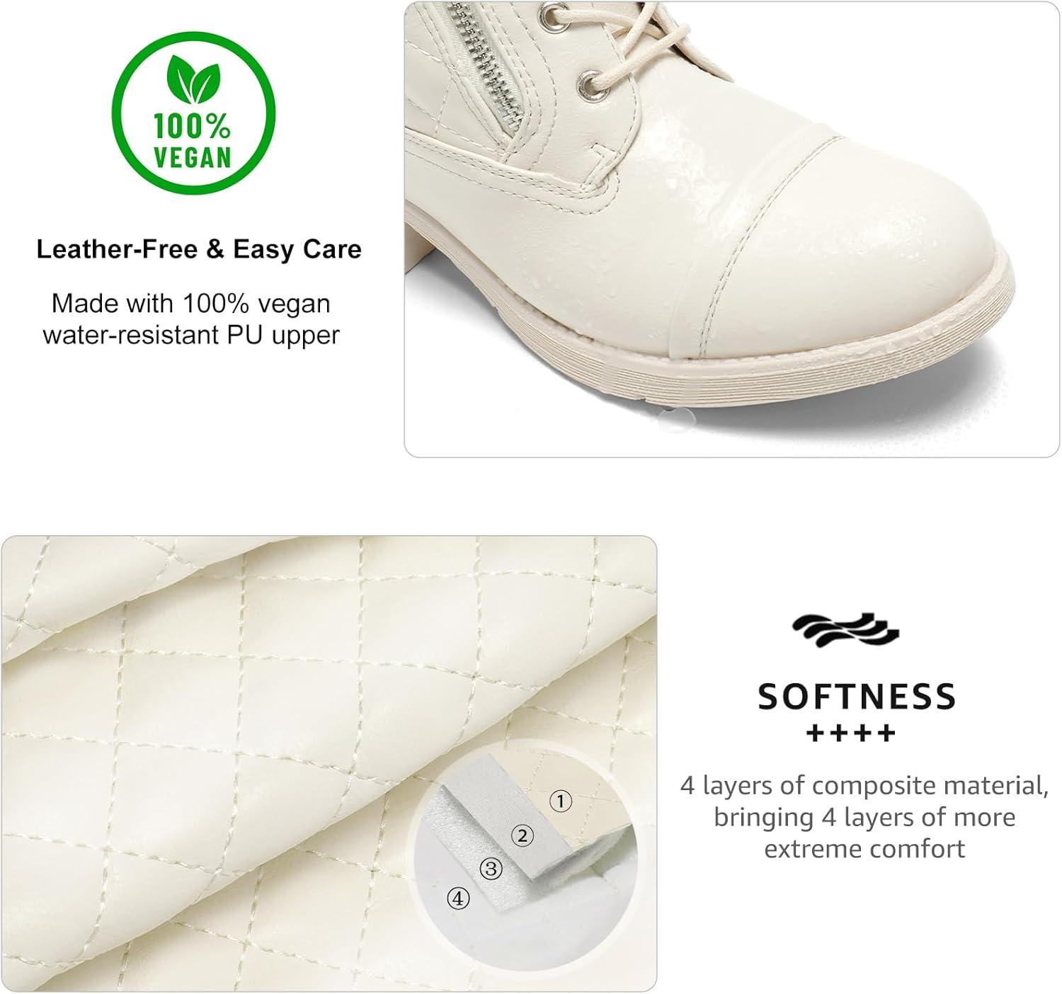 STQ Women’s Combat Boots Lace up Ankle Booties(Creamy Beige White)