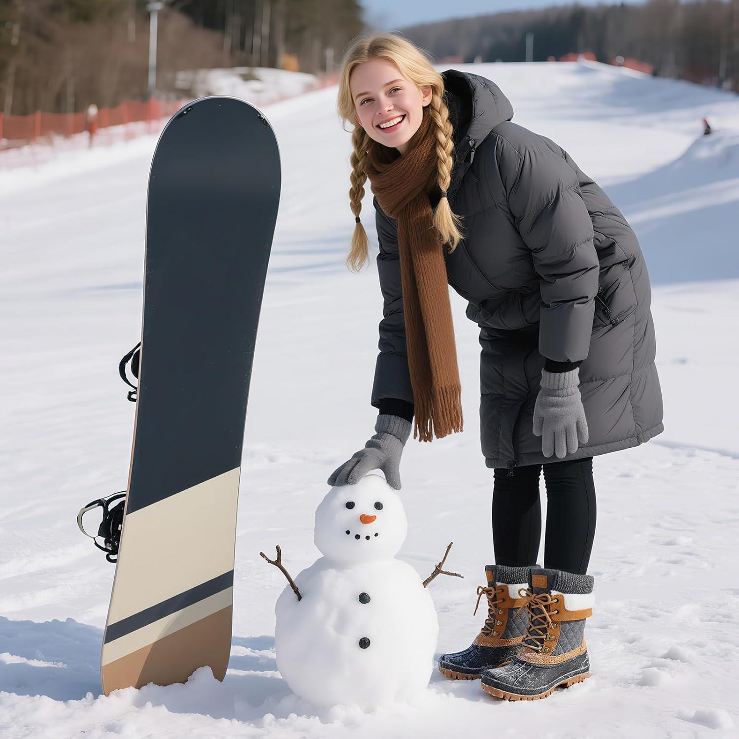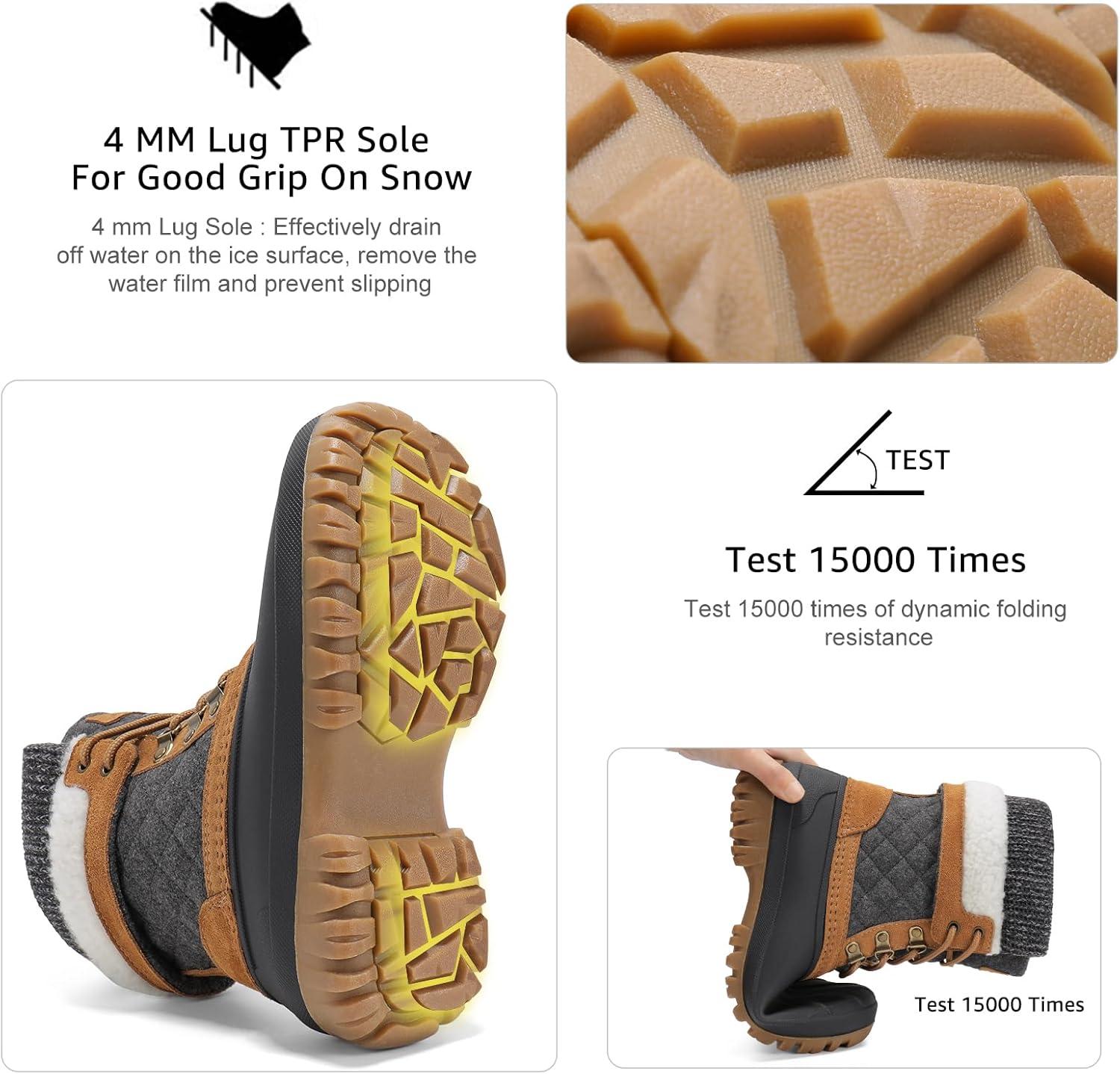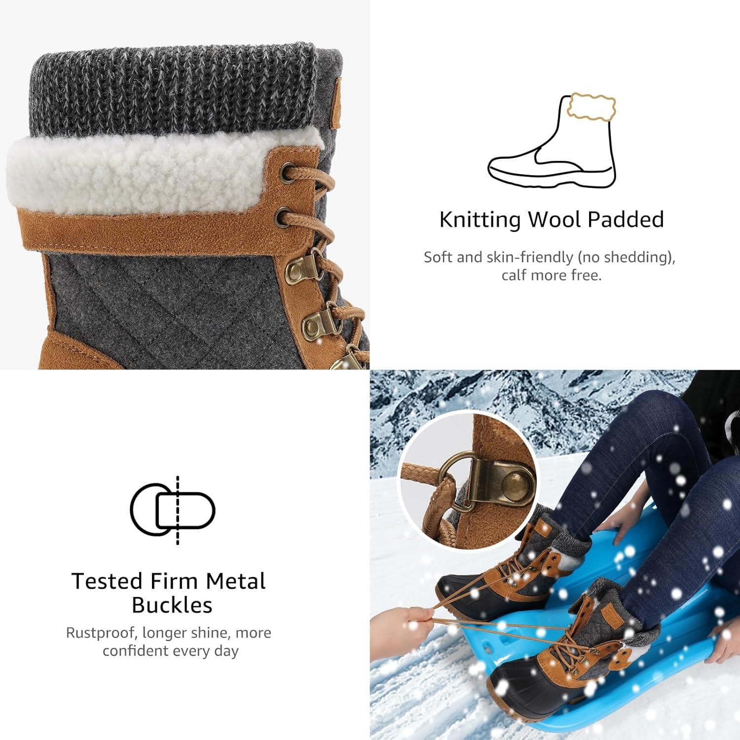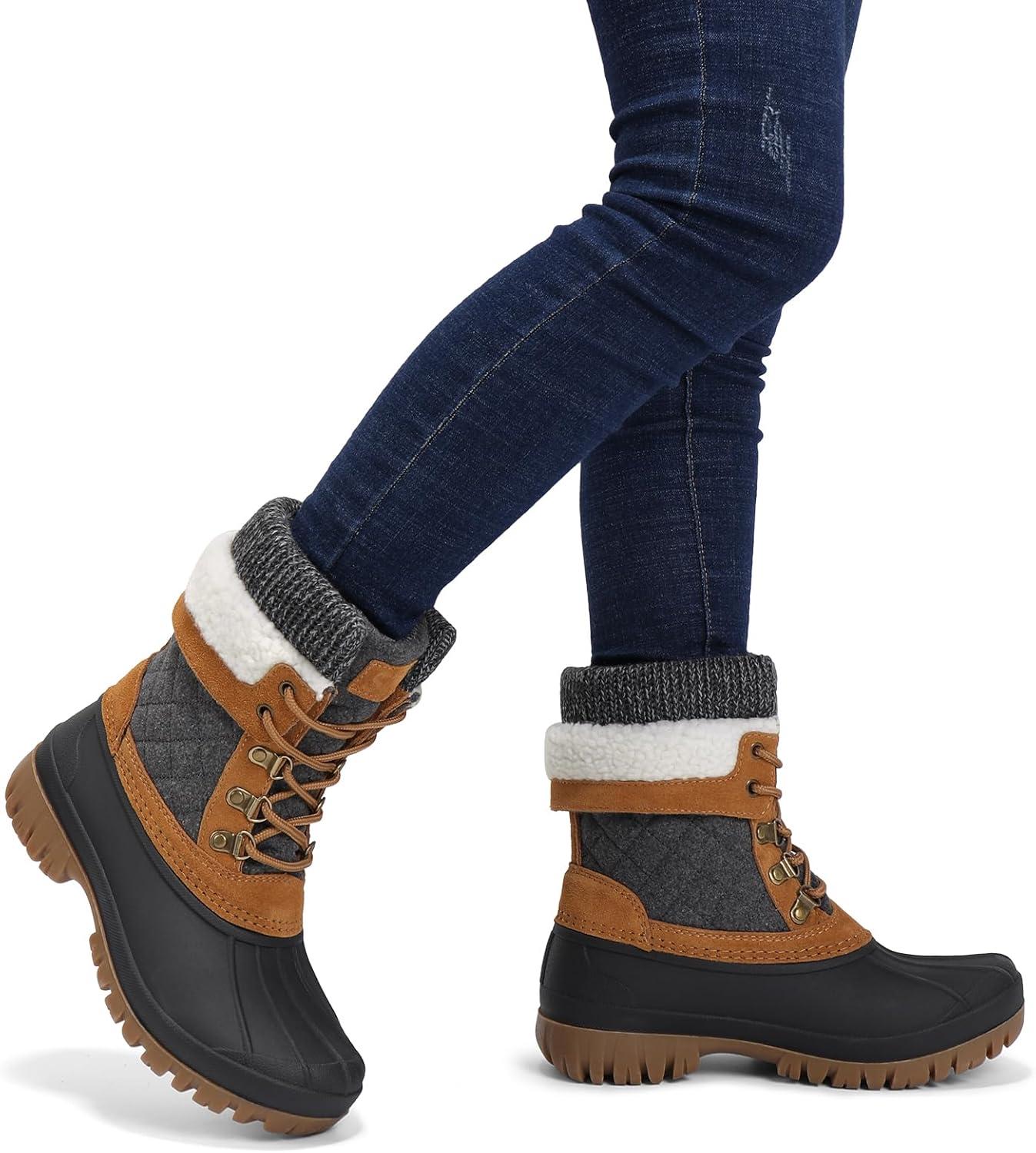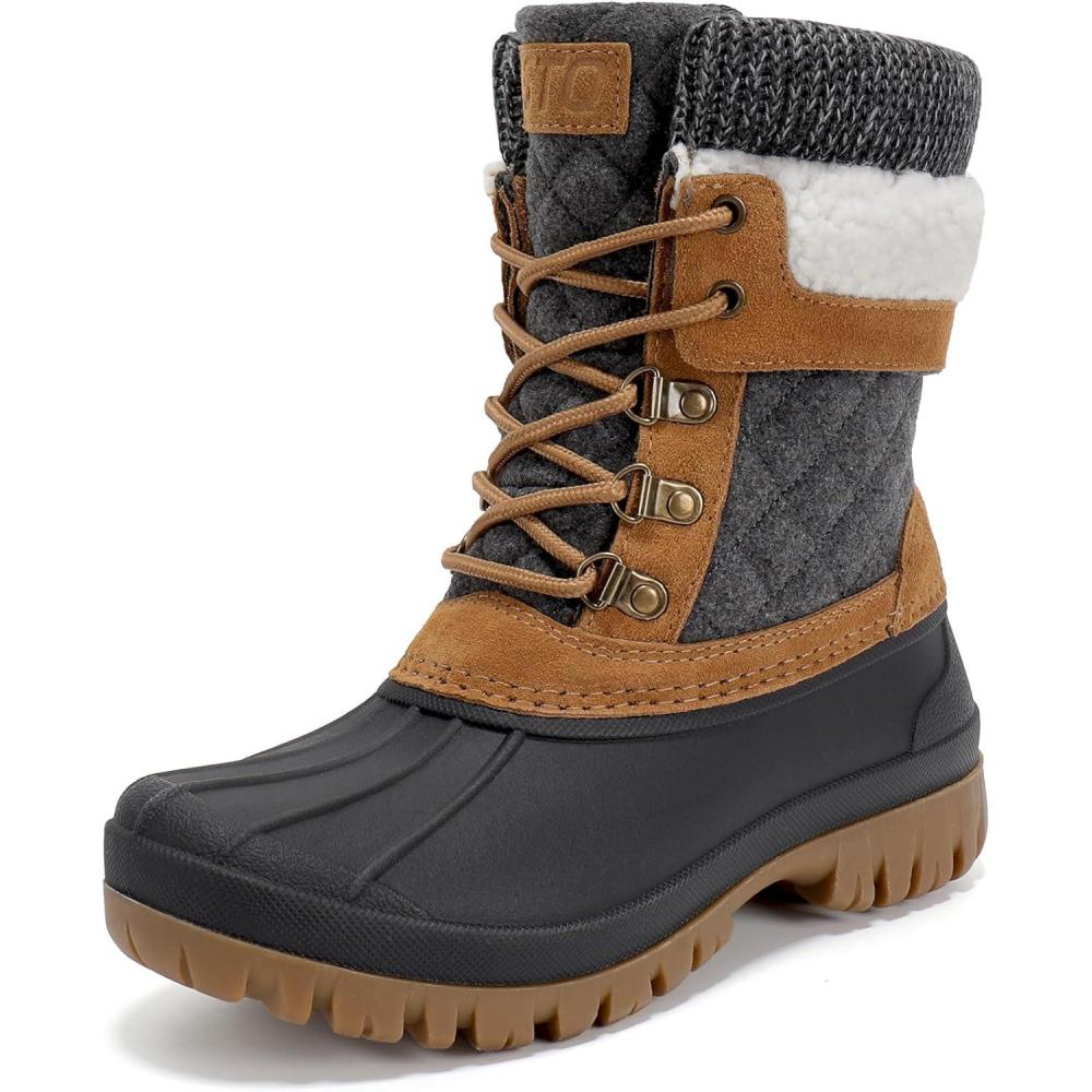 STQ Women’s Duck Boots Waterproof Winter Snow Boot Warm Cozy for Cold Weather Non Slip(Brown Grey)