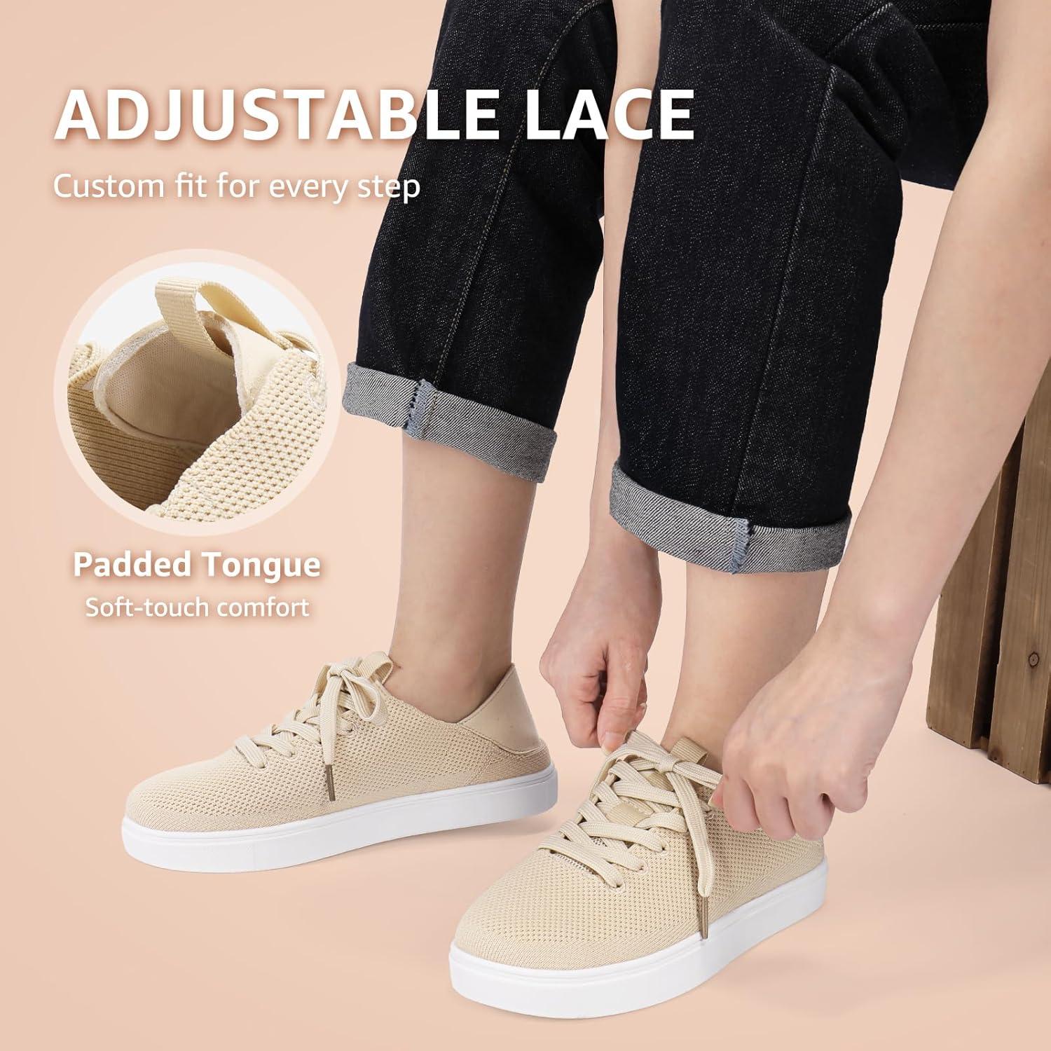 STQ Women’s Orthopedic Sneakers with Foldable Heel | Lightweight Breathable Tennis Shoes for Walking, Travel & Business Casual Wear(Beige)