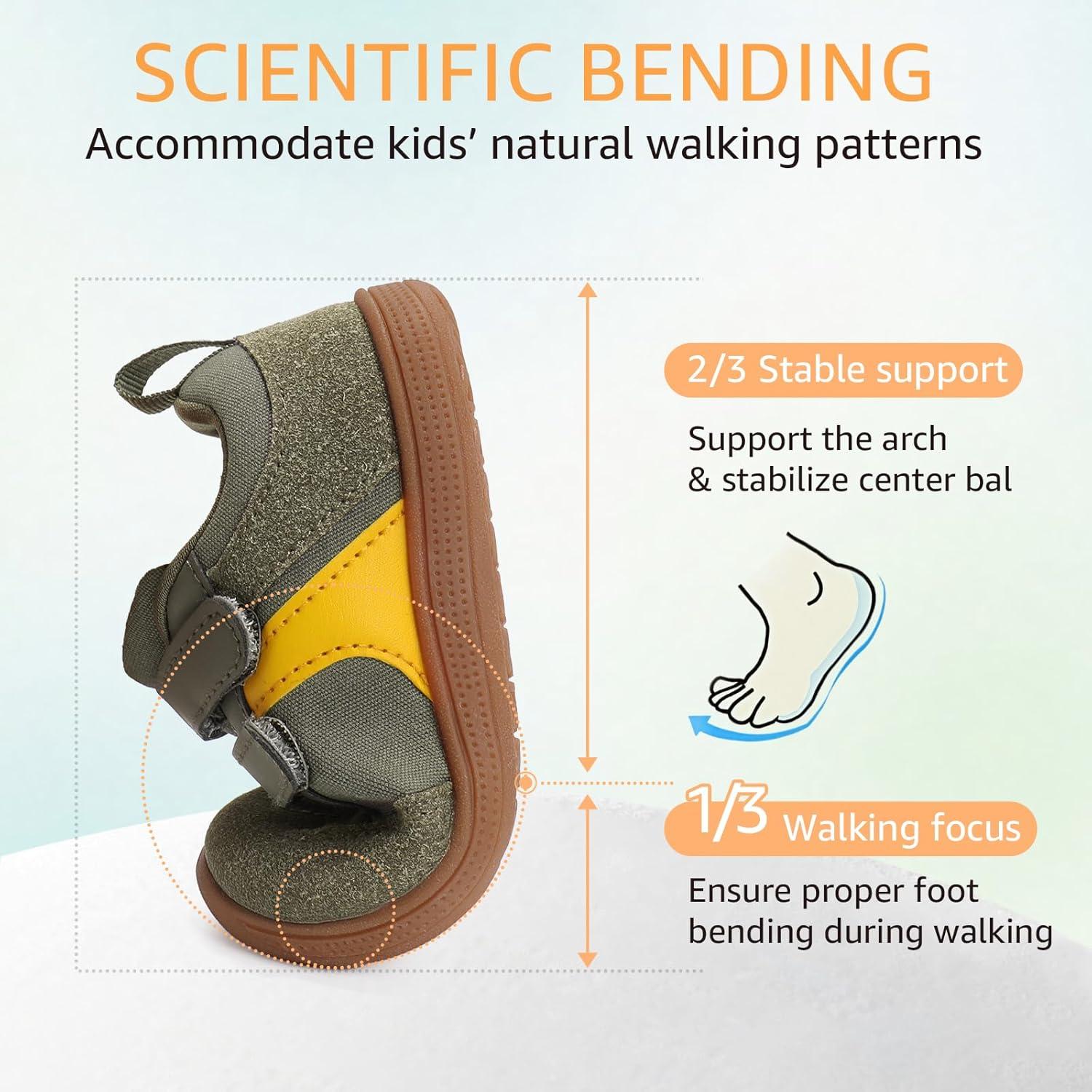 Toddler Wide Toe Box Barefoot Shoes Boys Girls Sneakers Zero Drop Kid Tennis Running Shoes Lightweight Non-Slip Comfortable Infant First Walking Shoe Outdoor Activities School(Khaki)