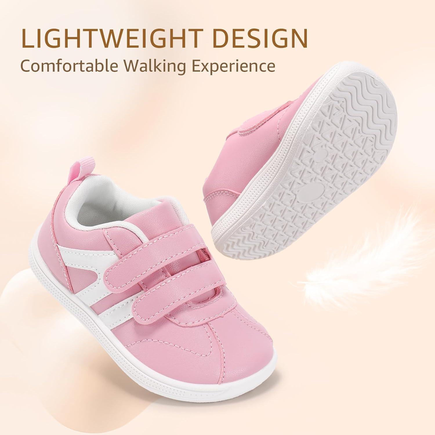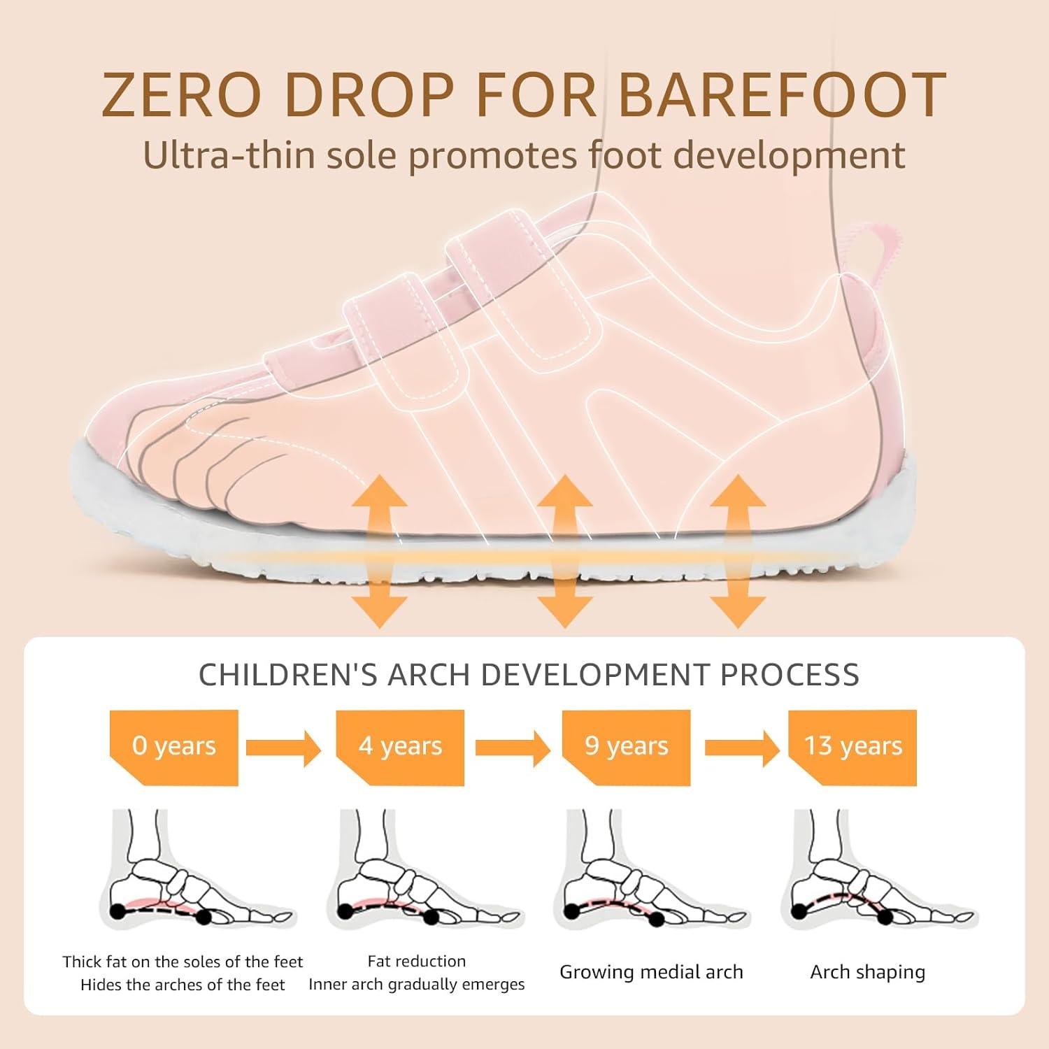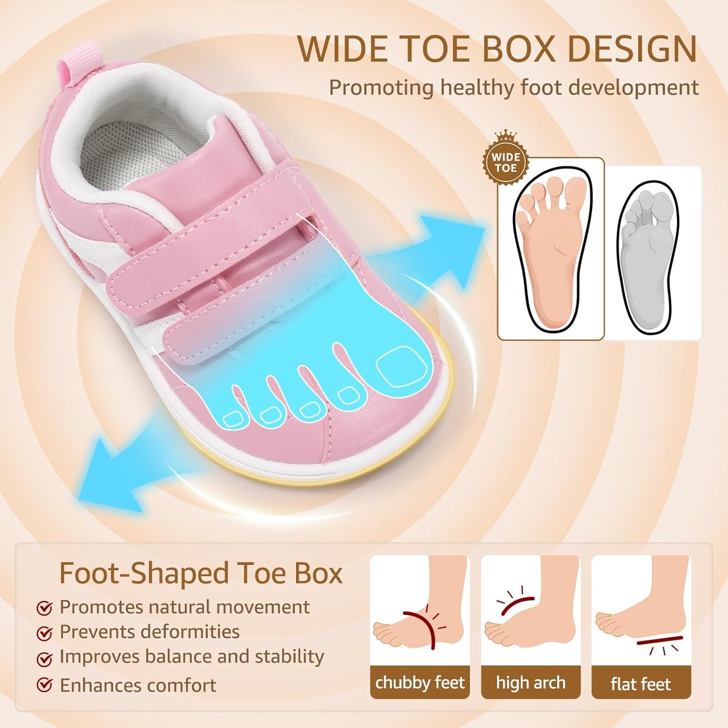 Toddler Wide Toe Box Barefoot Shoes Girls Boys Sneakers Zero Drop Fashion Kid Tennis Running Shoes Lightweight Non-Slip Comfortable First Walking Shoe Outdoor Activities School(Water Pink)