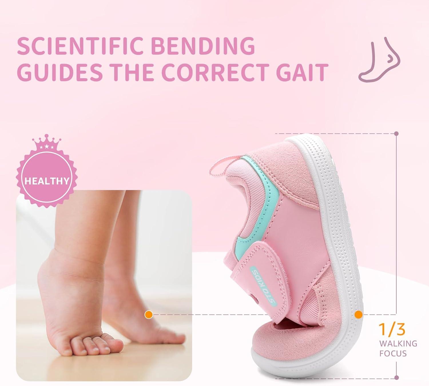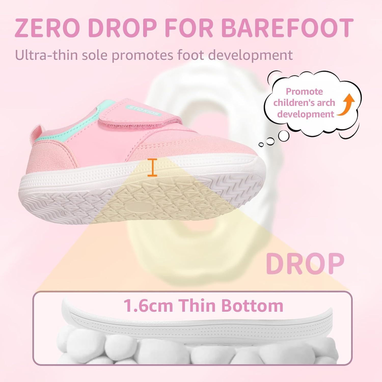 Toddler Wide Toe Box Shoes Barefoot Sneakers Girls Boys Zero Drop First Walking Running Tennis Grounding Shoes(Blush Powder)